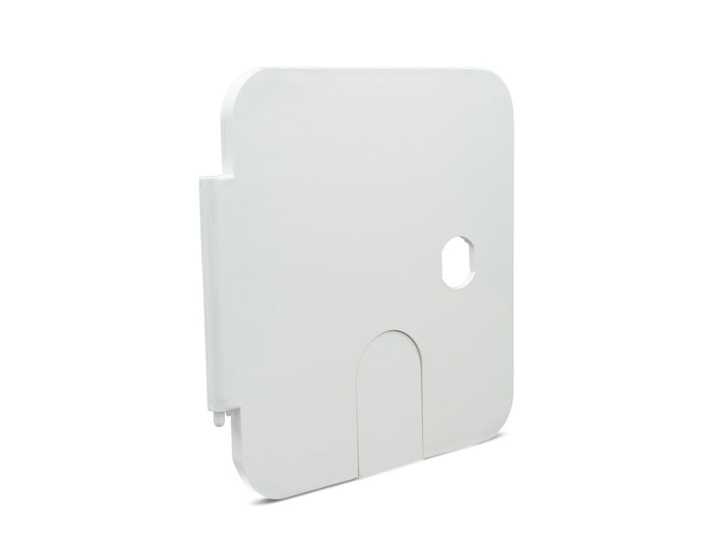 The B&B Molders Electrical Cord Hatch is a robust replacement hatch door designed specifically for electrical access. This product features a vermin access design and is compatible with any B&B molder hatch that has a 6.5-inch by 6-inch door. Constructed from high-quality plastic, it is UV and impact resistant, ensuring long-lasting performance in various environments.