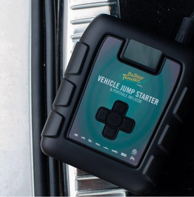 The Battery Tender Portable Jump Starter and Tire Inflator is a versatile device designed to provide reliable power for 12 Volt batteries in cars, boats, SUVs, and trucks. With an impressive 800 peak amps, this compact unit can jump start gas and diesel engines up to a V8 and inflate standard tires from flat to full in just eight minutes. Its innovative design ensures you are always prepared for unexpected situations on the road.