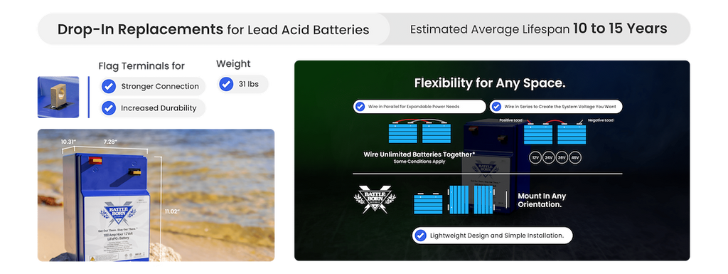 - Drop-in replacement for 6 Volt GC2 lead acid batteries