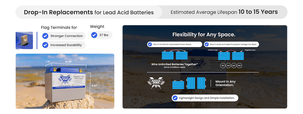 • Easy drop-in replacement for lead-acid batteries