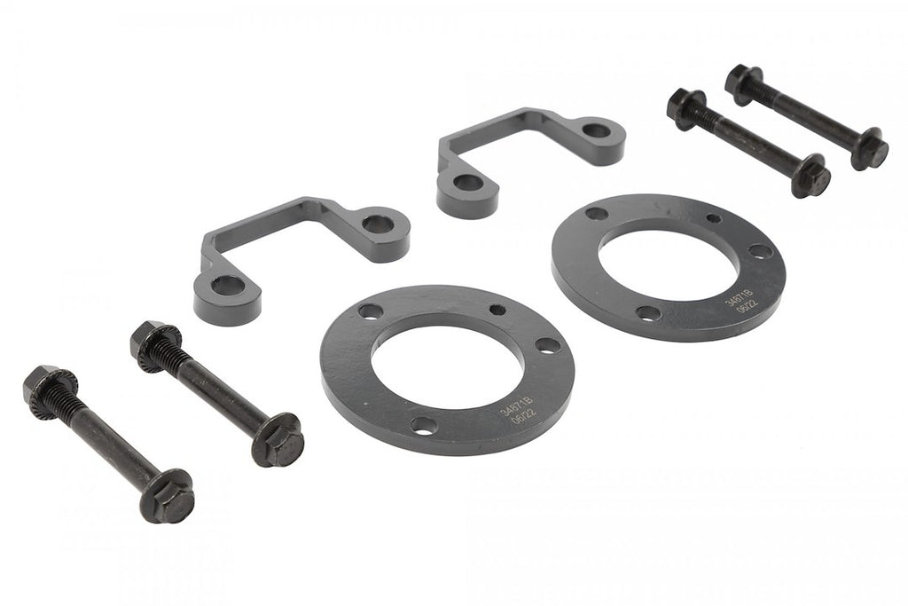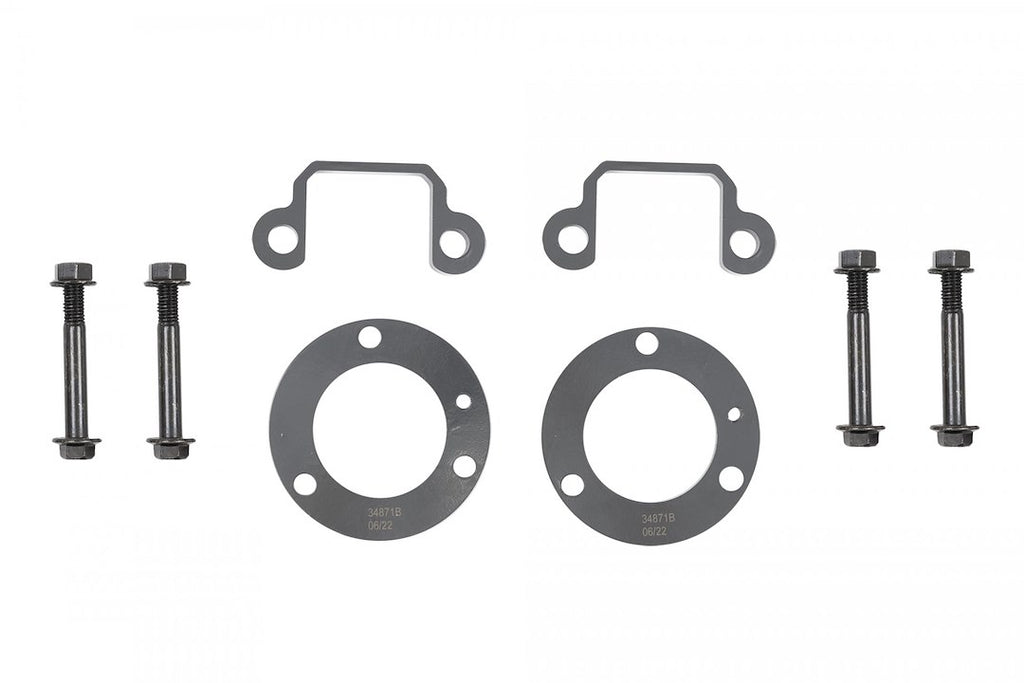 The Bell Tech Leveling Kit is designed specifically for the 2021 and newer Ford Bronco 4WD models, providing a straightforward solution to achieve a balanced stance. This kit includes high-quality strut spacers that lift the front end by 1 inch, allowing for the installation of larger off-road tires while maintaining the original ride quality and suspension integrity.