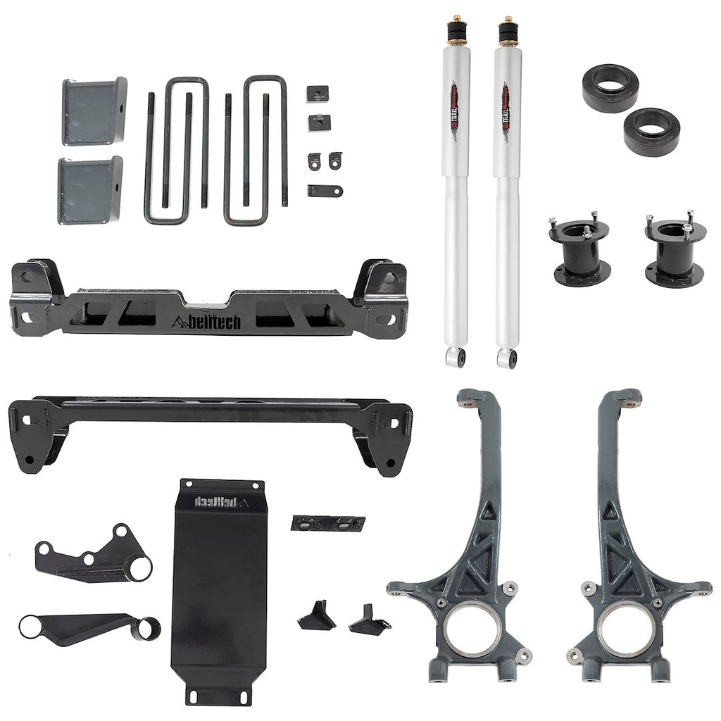 The Bell Tech Lift Kit Suspension is designed to elevate your truck or Jeep, providing a robust 6-inch lift for both front and rear. This precision-engineered suspension system is crafted in the USA, ensuring high-quality performance and durability. With innovative design features, this lift kit enhances ride quality and off-road capability, making it suitable for tackling various terrains.