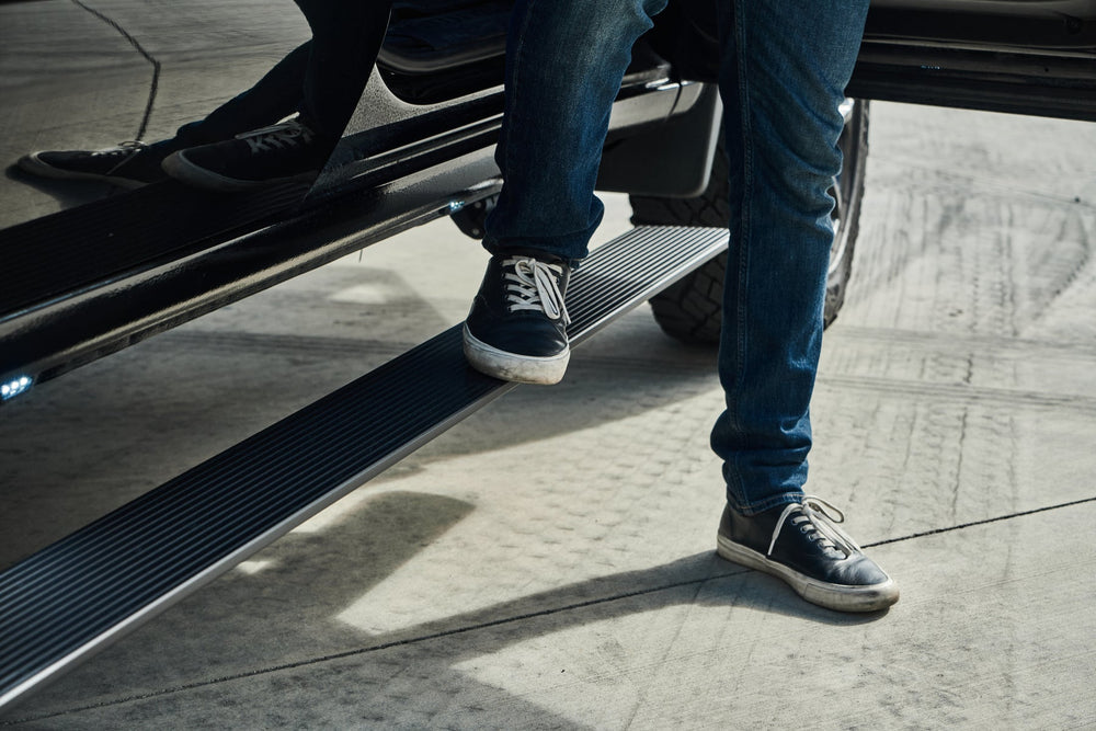 • 6-inch wide full cab length steps that automatically deploy and retract with vehicle door operation