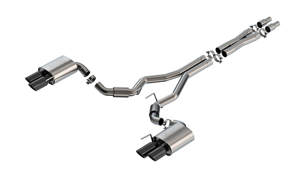 The Borla ATAK Series Cat Back Exhaust System is engineered to deliver superior performance and an aggressive sound profile. Constructed from high-quality T-304 stainless steel, this exhaust system features a 3-inch diameter true dual design with a merge X-pipe, ensuring optimal exhaust flow and enhanced horsepower. The innovative Polyphonic Harmonizer technology creates a rich, full-bodied sound that resonates with automotive enthusiasts.