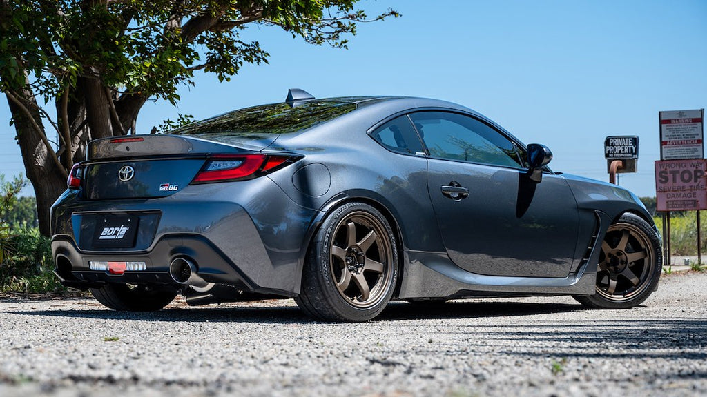 The Borla Cat-Back Exhaust System Kit is engineered specifically for the 2.4 Liter engine in the BRZ and GR86, delivering a powerful performance boost and an aggressive exhaust note. This system features a 3-inch diameter single exit design that utilizes advanced Polyphonic Harmonizer technology to produce a rich, full-bodied sound without cabin drone. Constructed from premium T-304 stainless steel, this exhaust system ensures durability and optimal exhaust flow.