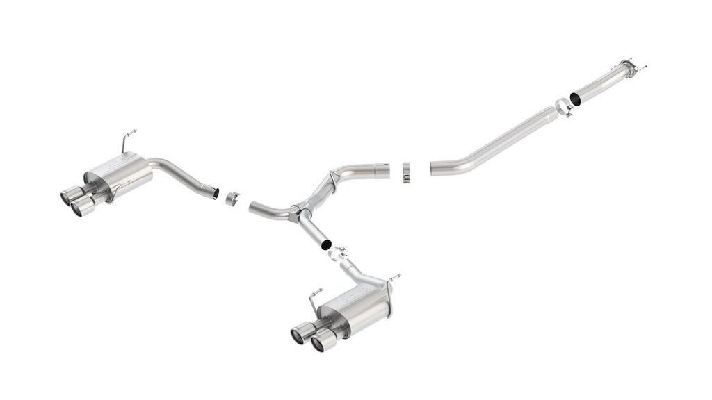 The Borla Exhaust System Kit is engineered to improve your vehicle's performance while delivering an aggressive sound. This S-Type Cat Back System features high-quality T-304 stainless steel construction, ensuring durability and longevity. With its innovative design, this exhaust system increases exhaust velocity, resulting in enhanced horsepower and fuel efficiency.