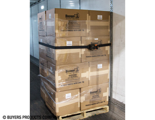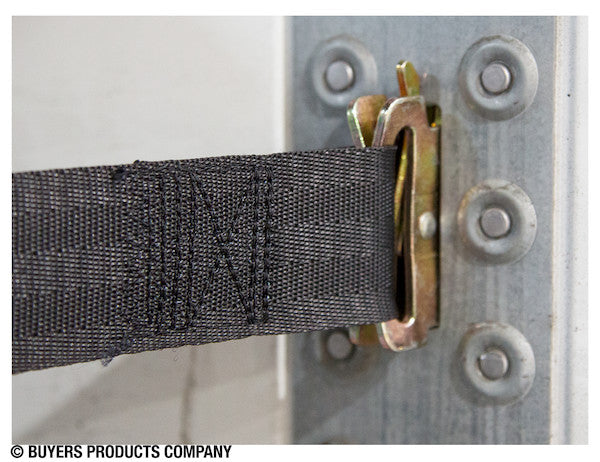 The Buyers Products 2 Inch Retractable E-Track Ratchet Tie Down is engineered for effective load management, featuring a robust nylon strap that can secure heavy items with a working load capacity of 1000 pounds. This tie down system is designed for easy attachment and storage, making it a practical choice for transporting goods safely.