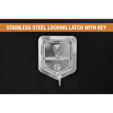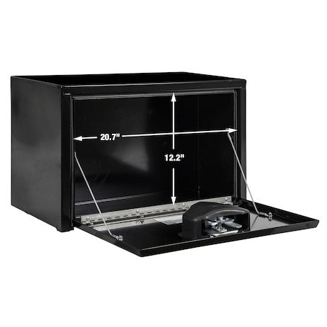 The Buyers Products Black Steel Underbody Truck Box is designed to provide reliable storage for your tools and equipment. Constructed from rugged 14 Ga steel and finished with a black powder coating, this truck box offers exceptional durability and corrosion resistance, making it suitable for the toughest job sites.