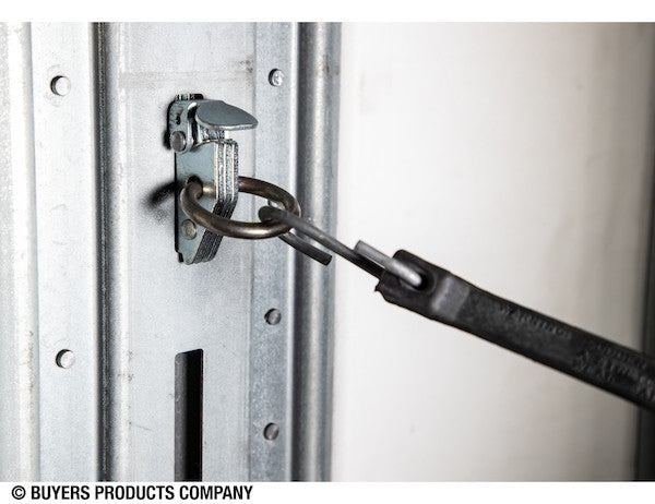 The Buyers Products E-Track Rope Ring is a robust anchoring point designed for use with S hooks, ropes, and cords. This easy-to-use adapter snaps securely into any section of the E-Track system, providing a reliable solution for your tie-down needs.
