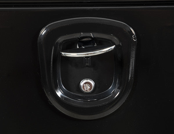 - 3-point locking die-cast compression latch system to safeguard against theft and weather damage