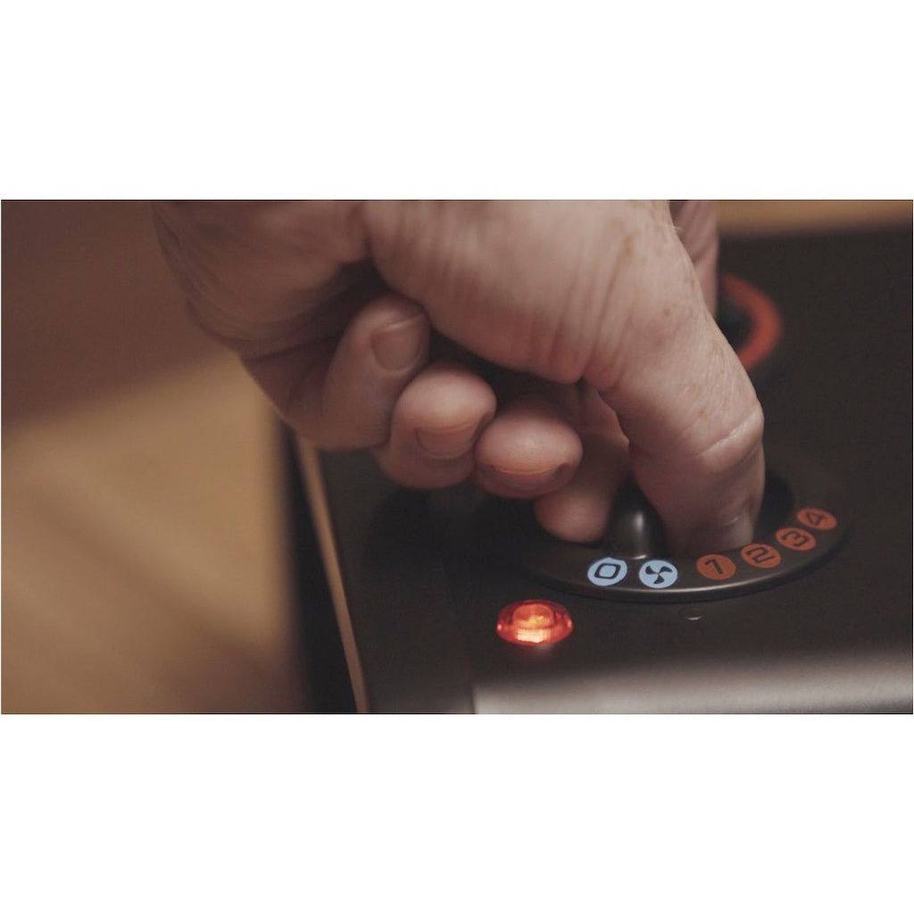 - Total climate control with three heat settings and two fan options