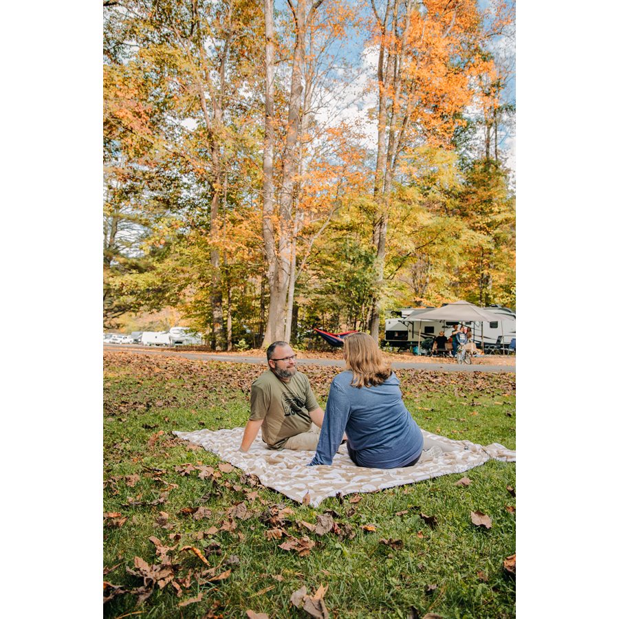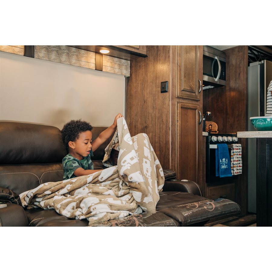The Camco Picnic Blanket is designed to provide warmth and comfort during your outdoor activities, whether at home, camping, or enjoying a picnic. This spacious queen-sized blanket measures 90 inches in length and 90 inches in width, making it an excellent choice for various settings. Crafted from 100 percent ultra-soft plush polyester, it features a stylish greige color with a distinctive Camco brand RV print. The blanket is also machine washable, ensuring easy maintenance and cleanliness.