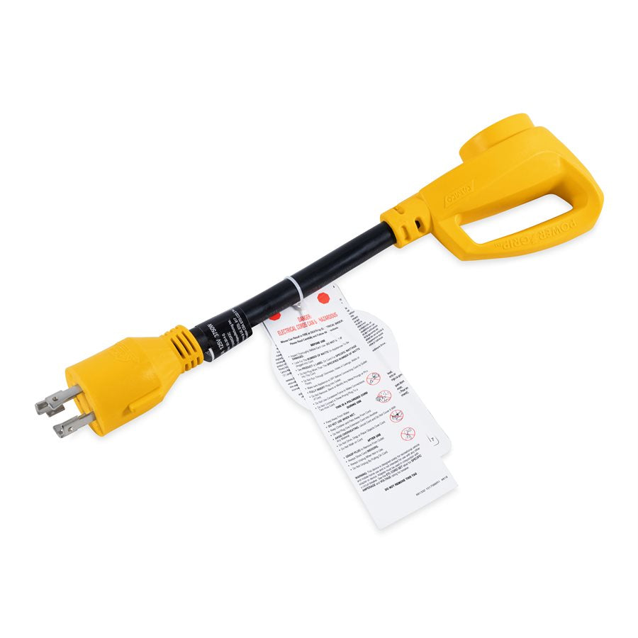 The Camco RV 12 Inch 30M/30F PowerGrip Generator Adapter is designed to facilitate a seamless connection between generators and recreational vehicles. This 4-prong adapter allows you to connect a generator equipped with a L14-30 locking receptacle to a standard RV cord set (TT-30), enabling access to 120V AC shore power. The adapter is engineered for durability and ease of use, featuring a patented PowerGrip handle for effortless unplugging.