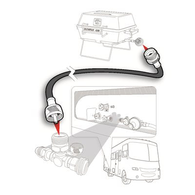 - Connects appliances designed for a 1-pound cylinder to your motorhome's onboard LP