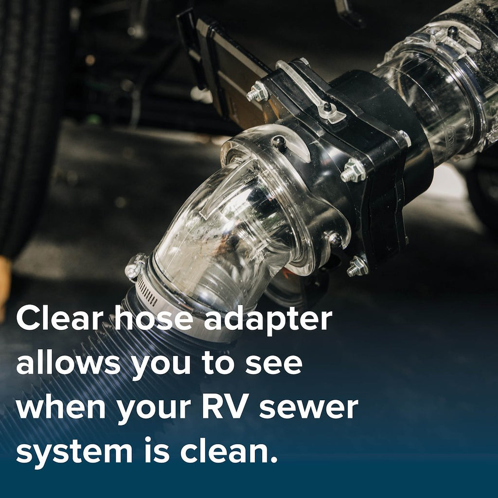 - Transparent design enables visibility to confirm when the RV sewer system is clean