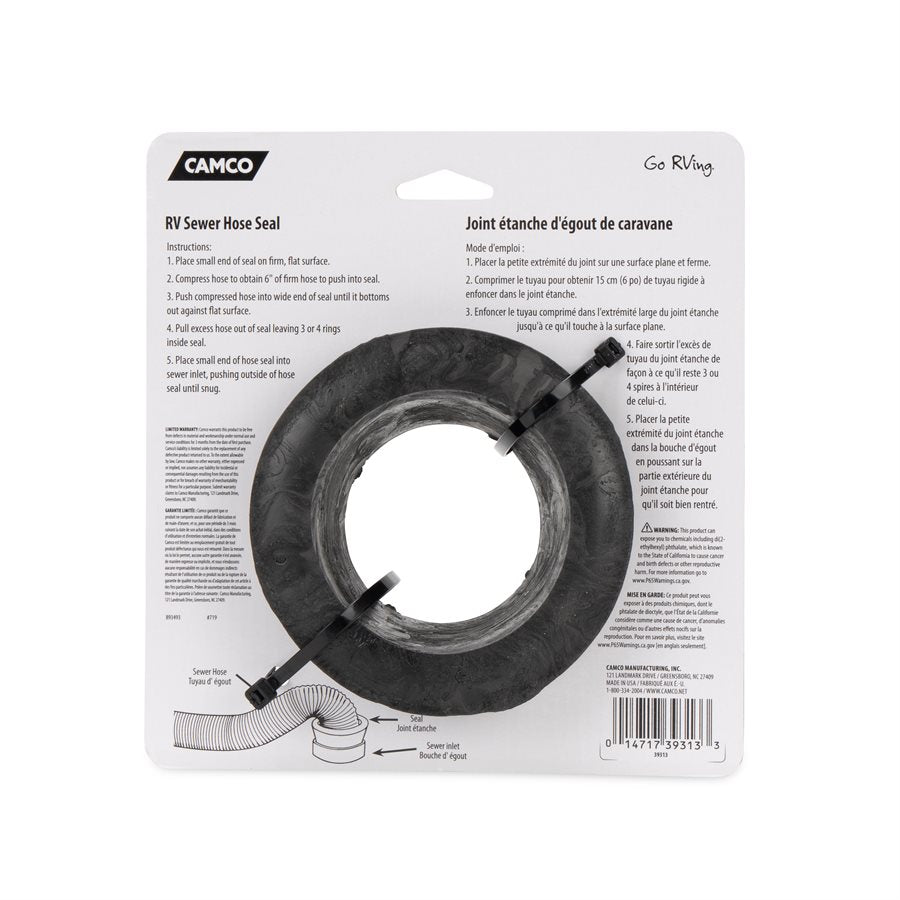 The Camco Sewer Hose Seal is designed to effectively block odors at dump stations, ensuring a cleaner and more pleasant experience during RV sanitation processes. This essential accessory features a sponge ring that creates an odor-proof connection, making it a reliable choice for RV owners.
