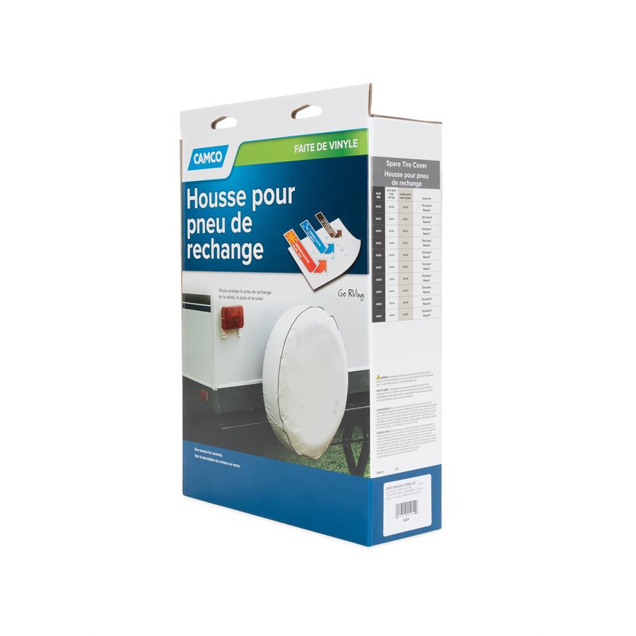 The Camco Spare Tire Cover is designed to provide reliable protection for your spare tire, keeping it safe from dirt, rain, and harmful UV rays. Constructed from high-quality vinyl, this cover is built to withstand the elements while ensuring a snug fit for tires with a diameter of 27 inches.