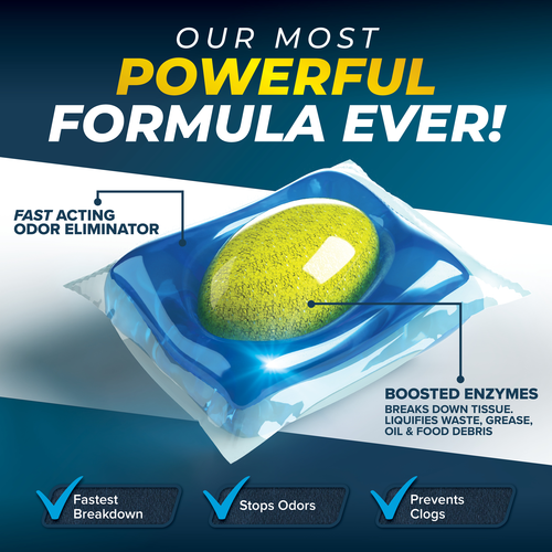- Septic tank safe, containing powerful enzymes and bacteria for rapid waste liquefaction