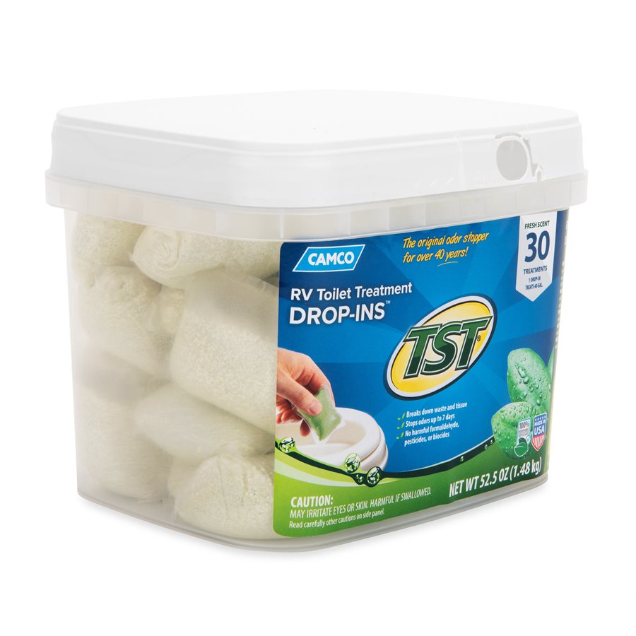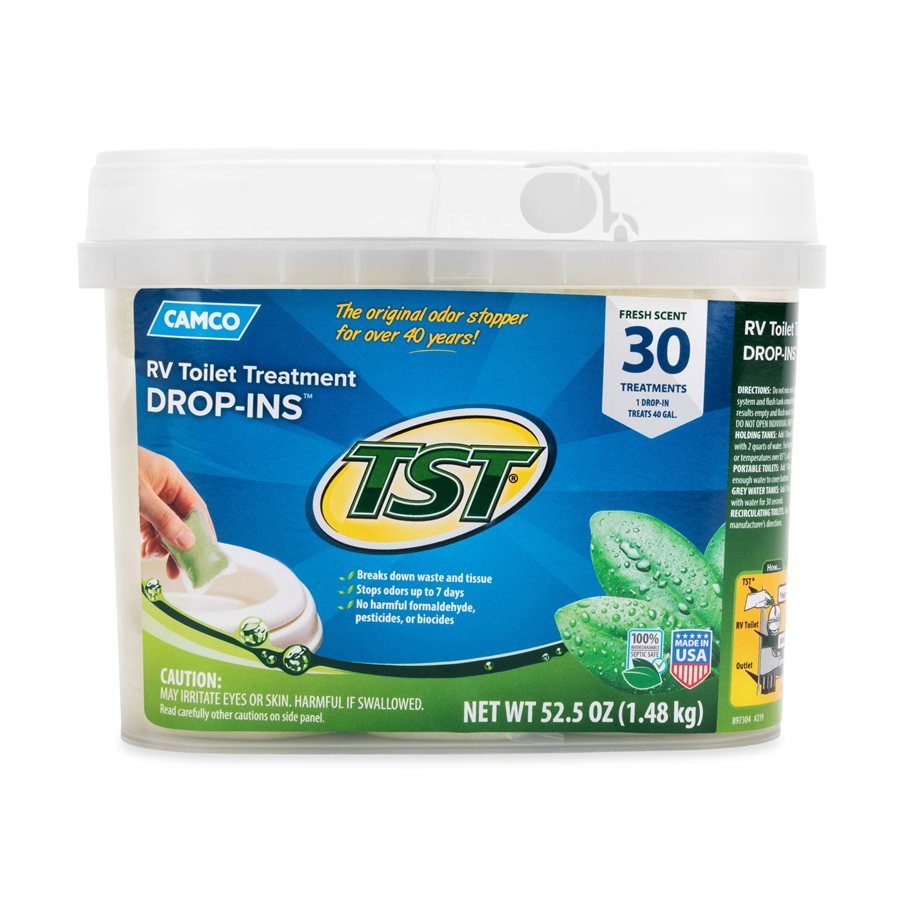 Camco Waste Holding Tank Treatment is a specialized chemical treatment designed to break down waste and tissue in RV holding tanks. This product is free from formaldehyde and features a deodorant with a fresh scent, ensuring a clean and pleasant experience. Each treatment lubricates sensors and is suitable for tanks up to 40 gallons. The convenient Drop-INS individual dose pouches make application simple and mess-free.