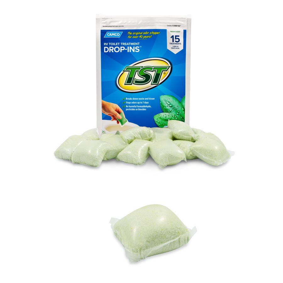 Camco Waste Holding Tank Treatment is a specialized chemical treatment designed to effectively break down waste and tissue in RV holding tanks. This product is free from formaldehyde and features a pleasant original scent, making it a reliable choice for maintaining sanitation in your RV. Each bag contains 15 individual dose pouches, each capable of treating a 40-gallon holding tank, ensuring convenience and ease of use for RV enthusiasts.
