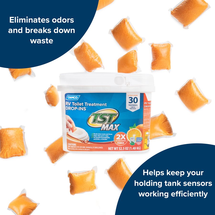 Camco Waste Holding Tank Treatment is a reliable and efficient solution designed to manage odors and break down waste in RV holding tanks. This product is formulated without formaldehyde, making it safe for both your tank and the environment. Each treatment comes in convenient Drop-INS individual dose pouches, ensuring no measuring or mess is required during application.