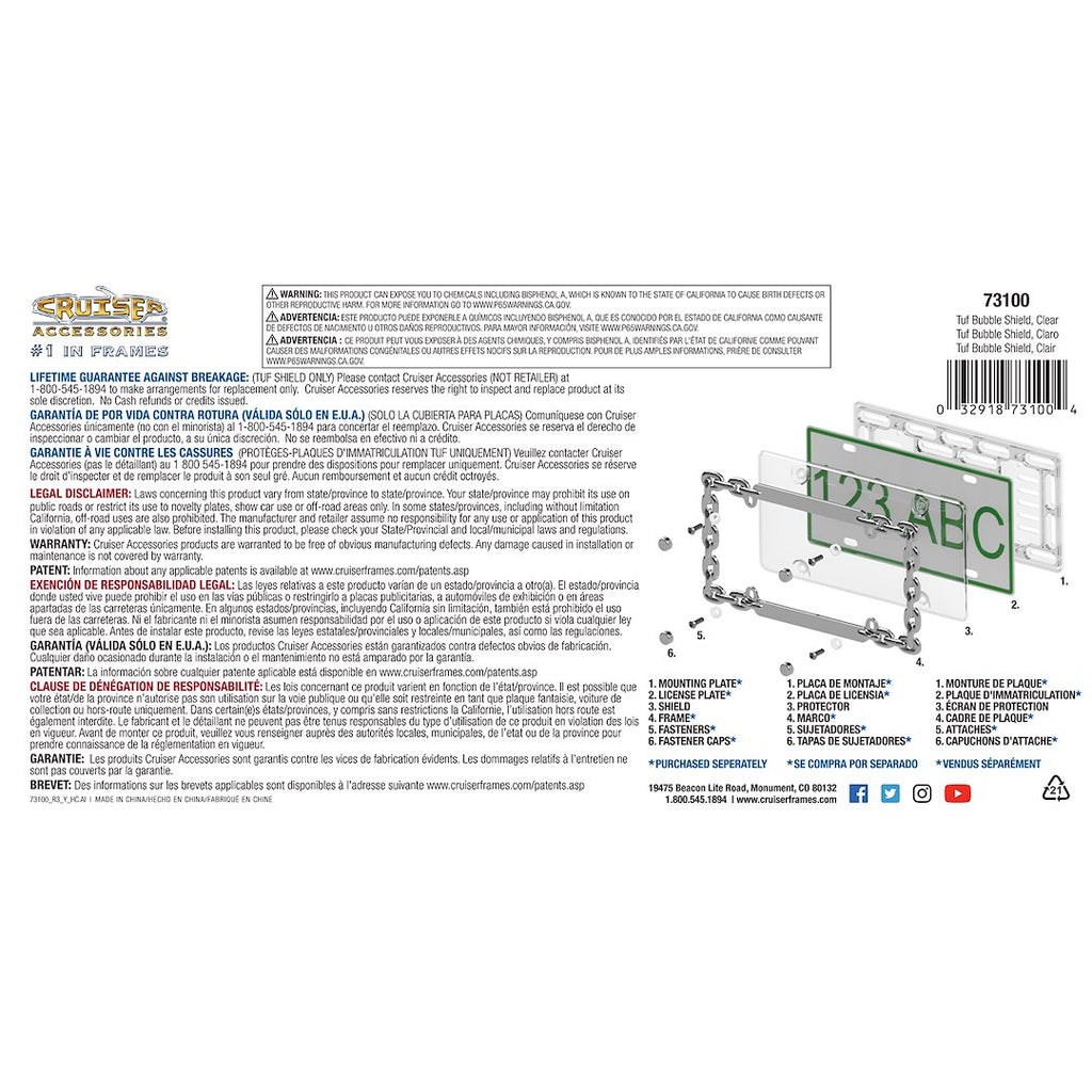 Clear Tuf Bubble Shield License Plate Cover (MPN: 73100)