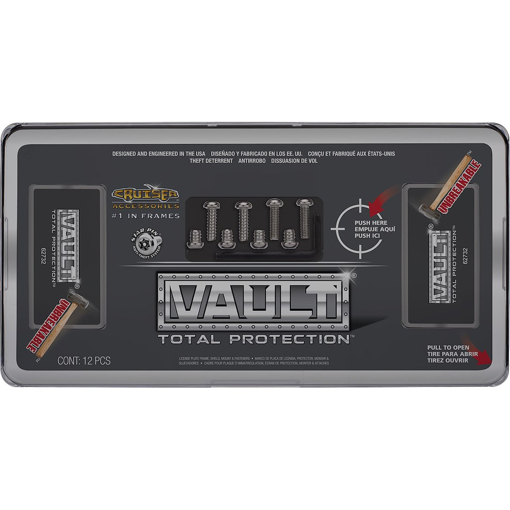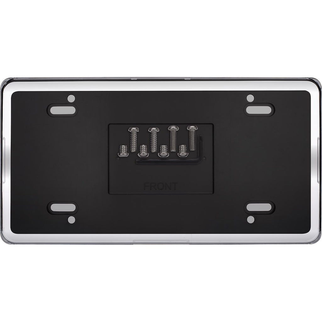 The Cruiser 62732 License Plate Frame offers robust protection for your novelty or license plate. Designed with a unique theft deterrent and water-resistant features, this frame ensures your plate remains secure and in pristine condition. The innovative design includes a snap-on smoke polycarbonate shield that is difficult to remove without the proper technique, providing an additional layer of security.