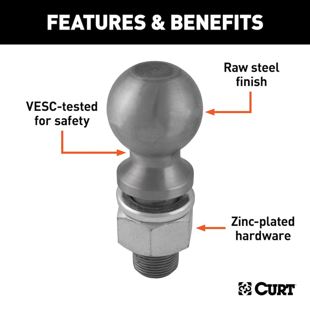 The Curt 2-5/16 Inch Trailer Hitch Ball is engineered for strength and durability, making it an essential component for heavy-duty towing applications. With a gross trailer weight capacity of 25,000 pounds, this hitch ball is designed to provide secure and reliable connections for your towing needs.