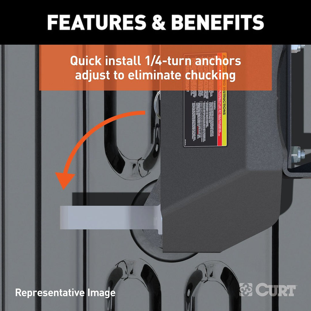 The CURT A25 Fifth Wheel Trailer Hitch is engineered for smooth and quiet towing, making it an essential component for your travel needs. With a robust weight capacity of 25,000 pounds and a vertical load limit of 6,250 pounds, this hitch is designed to provide stability and ease of use for your towing requirements.