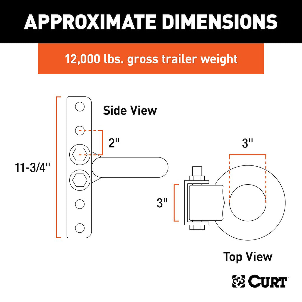 The CURT Lunette Ring is designed for robust towing applications in agriculture, construction, and military settings. This durable component provides a reliable connection between your vehicle and trailer, ensuring secure coupling for heavy loads. With a 3-inch inside diameter and a remarkable 12,000-pound capacity, this lunette ring is engineered to meet the demands of heavy-duty towing while offering adjustable height options for optimal trailer leveling.