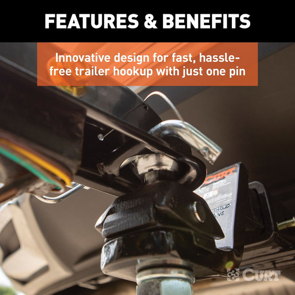 The CURT QuickPin Trailer Coupler offers a revolutionary solution for hassle-free trailer coupling. Designed to eliminate the traditional latch mechanism, this coupler allows for quick and easy attachment to your trailer, making the process straightforward and efficient.