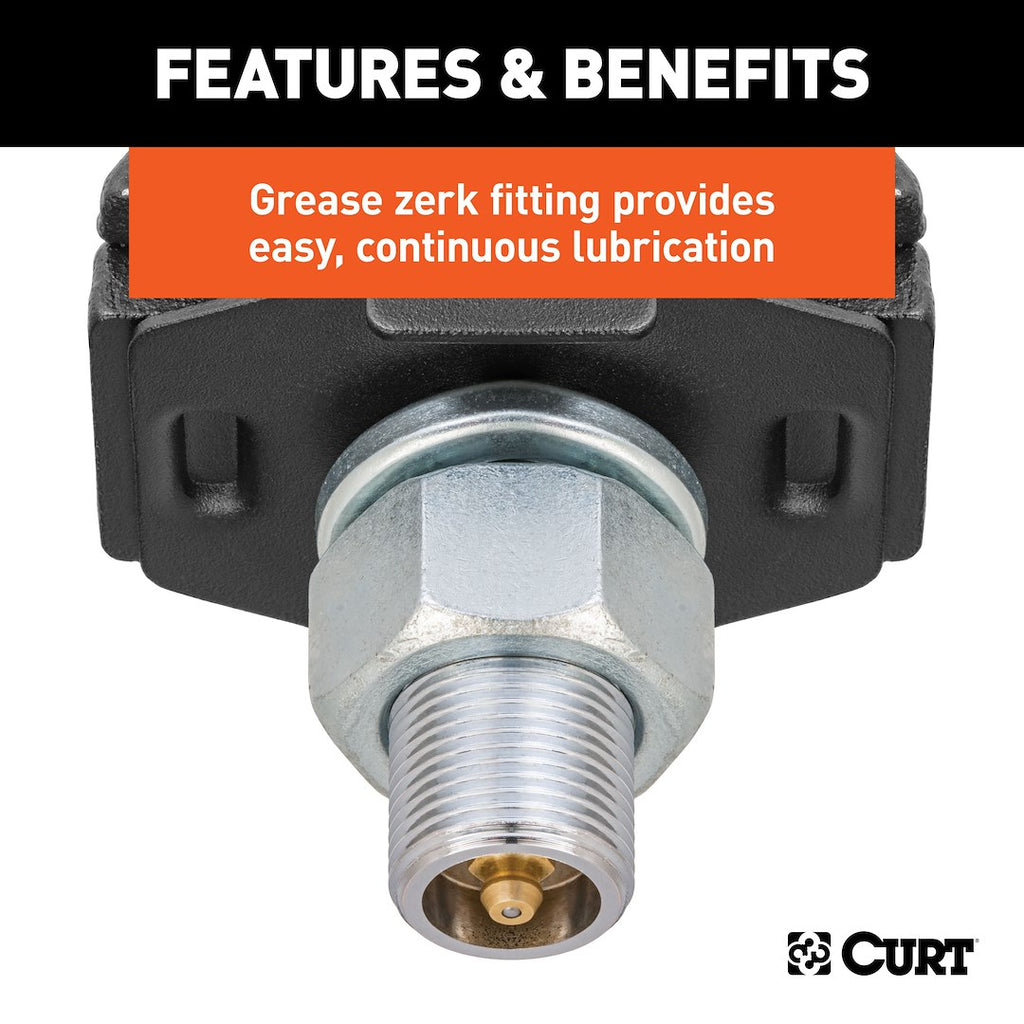 The Curt RockerBall trailer hitch ball is designed to provide a smoother towing experience by utilizing innovative ShockDrop technology. This unique hitch accessory features an integrated cushion isolator that transforms a standard ball mount into a cushioned hitch, effectively reducing vibrations and noise during towing. With a gross trailer weight capacity of 12,000 pounds, this hitch ball is built for durability and reliability.
