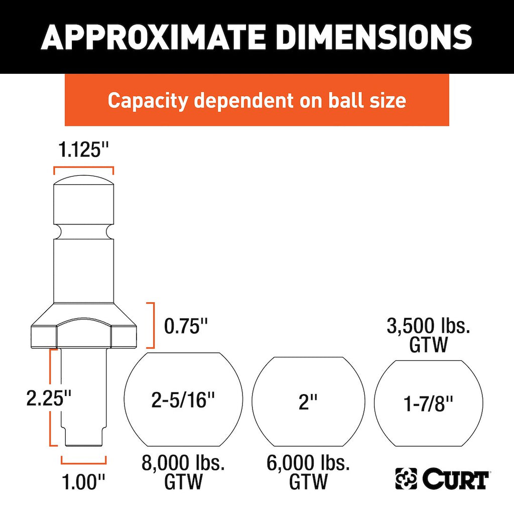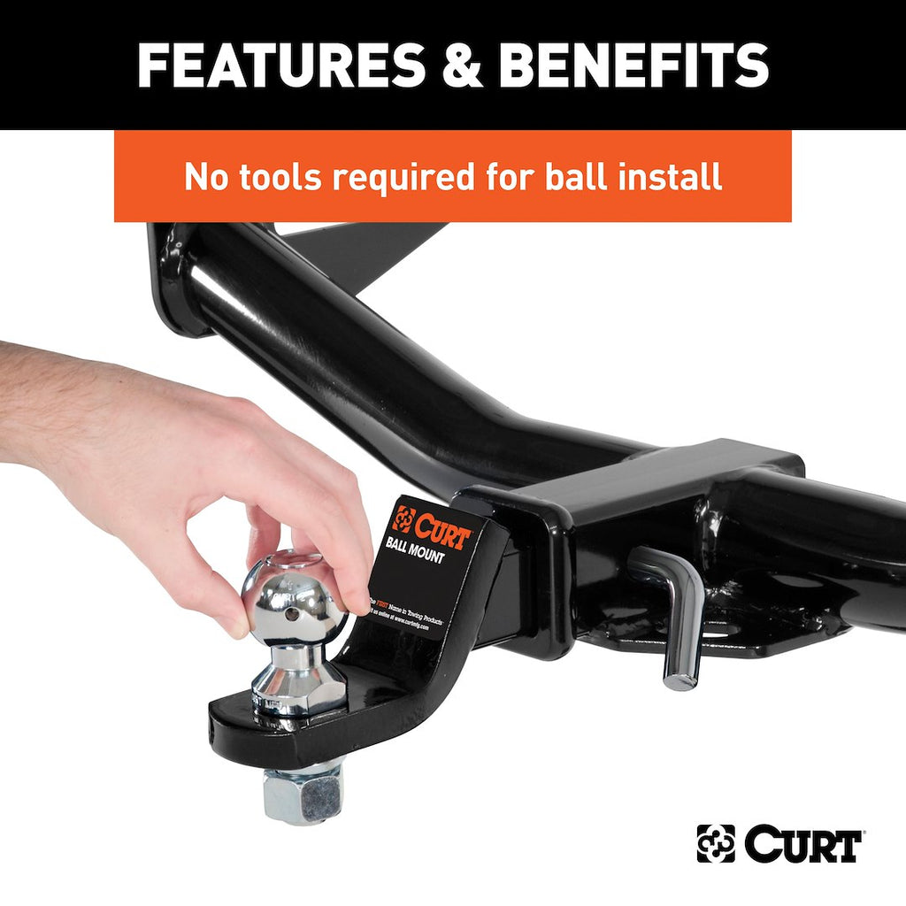 The CURT Switch Ball Trailer Hitch Ball is designed to provide a reliable and adaptable towing experience for various light-duty and medium-duty applications. Featuring an innovative interchangeable ball system, this trailer hitch ball allows for quick and easy adjustments to accommodate different coupler sizes without the need for additional equipment.