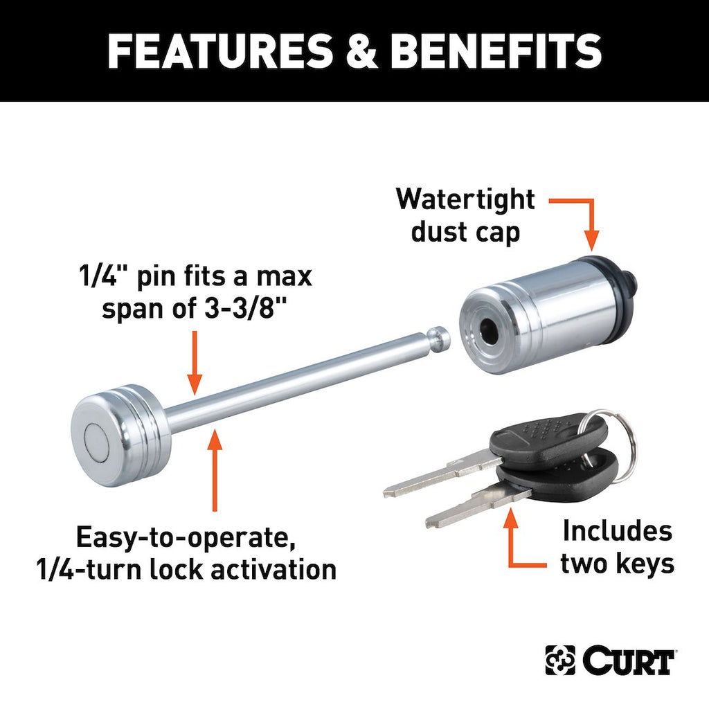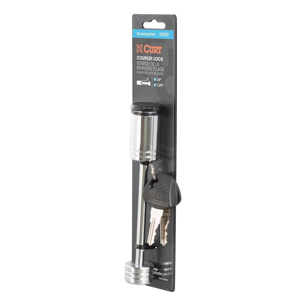 The Curt Trailer Coupler Lock is engineered to provide robust security for your trailer and towing gear. This lock not only secures the coupler latch mechanism but also significantly reduces the risk of tampering and theft while your trailer is attached to your vehicle. Designed with a barbell style, it ensures that the locking pin is well-protected, making it an essential accessory for safeguarding your boat, camper, or utility trailer.