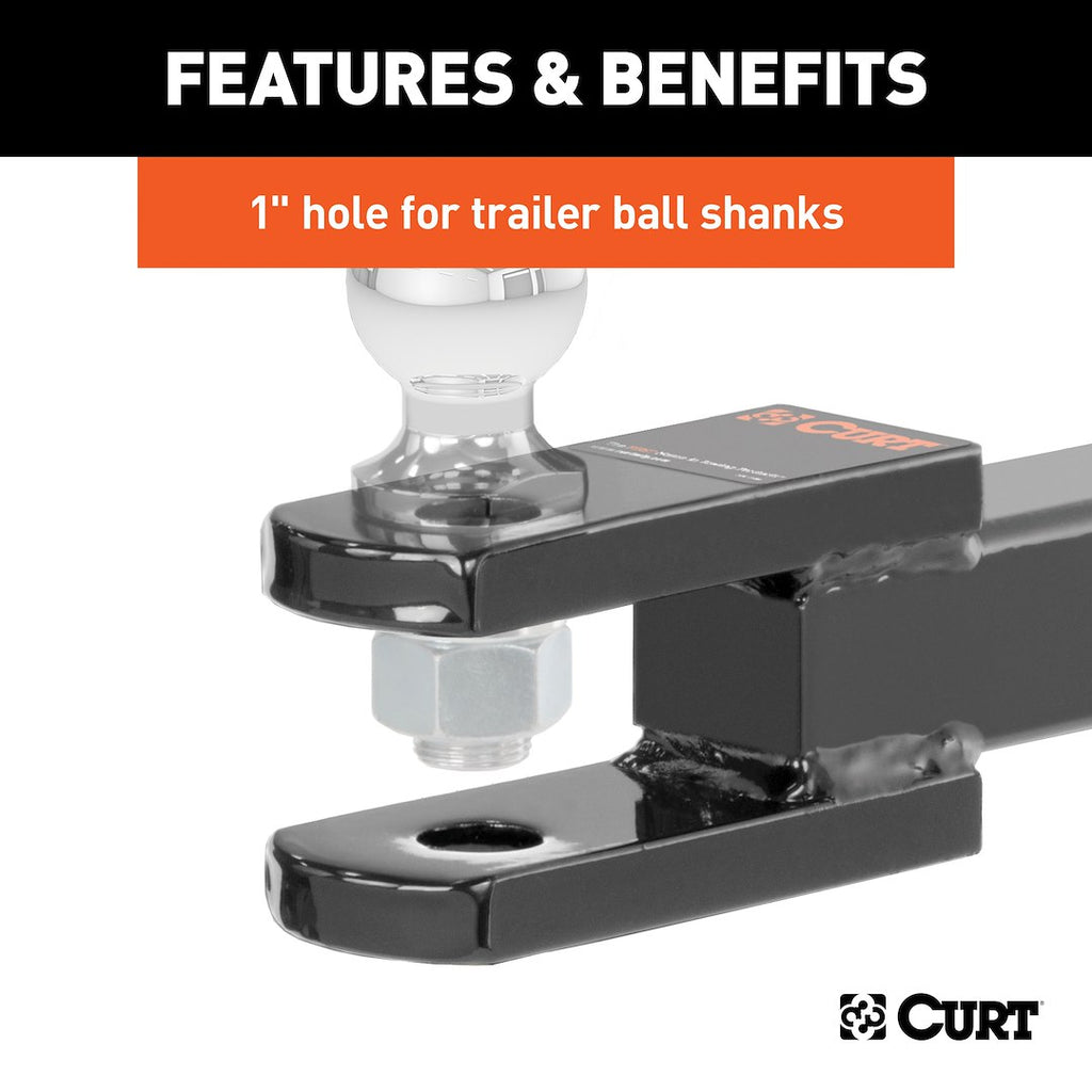 The Curt Trailer Hitch Ball Mount is designed to provide a reliable and efficient towing experience. This Class III ball mount fits a standard 2-inch receiver and is engineered to handle a gross trailer weight of up to 6,000 pounds and a tongue weight of 600 pounds. Its robust construction and specialized design make it suitable for a range of towing needs, from rugged terrains to everyday hauling tasks.