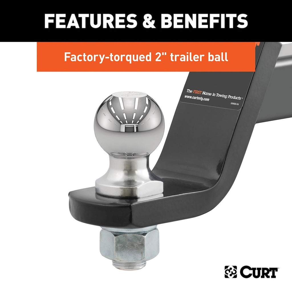 - Factory-torqued CURT trailer ball for easy coupling with a 2-inch coupler