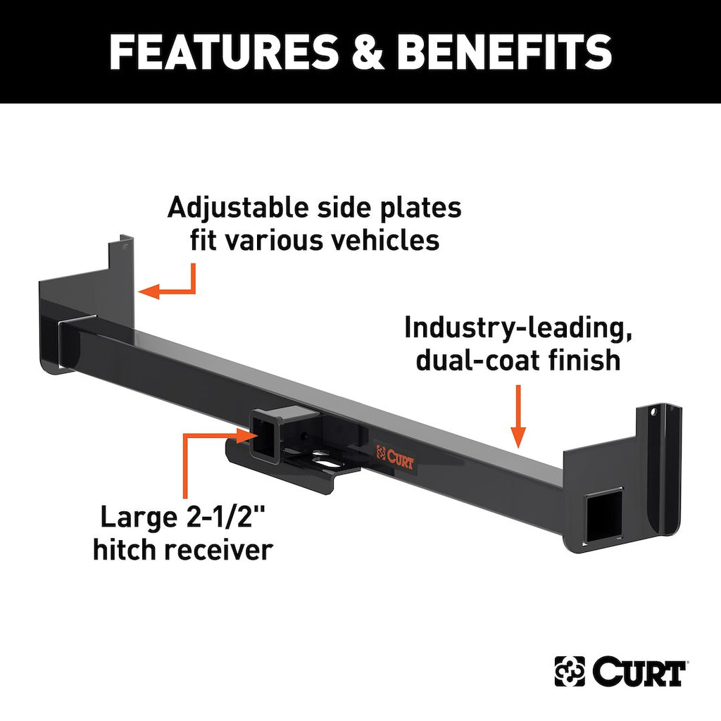 The CURT 15-2420 Trailer Hitch Rear is a robust Class V weld-on hitch designed for high-capacity towing. With a 2-1/2 inch receiver and a weight carrying capacity of 20,000 pounds, this hitch is engineered to provide reliable performance for heavy-duty trailers. Its unique three-piece design allows for versatile installation on various vehicle frames, making it an excellent choice for 1/2-ton, 3/4-ton, and 1-ton pickup trucks.