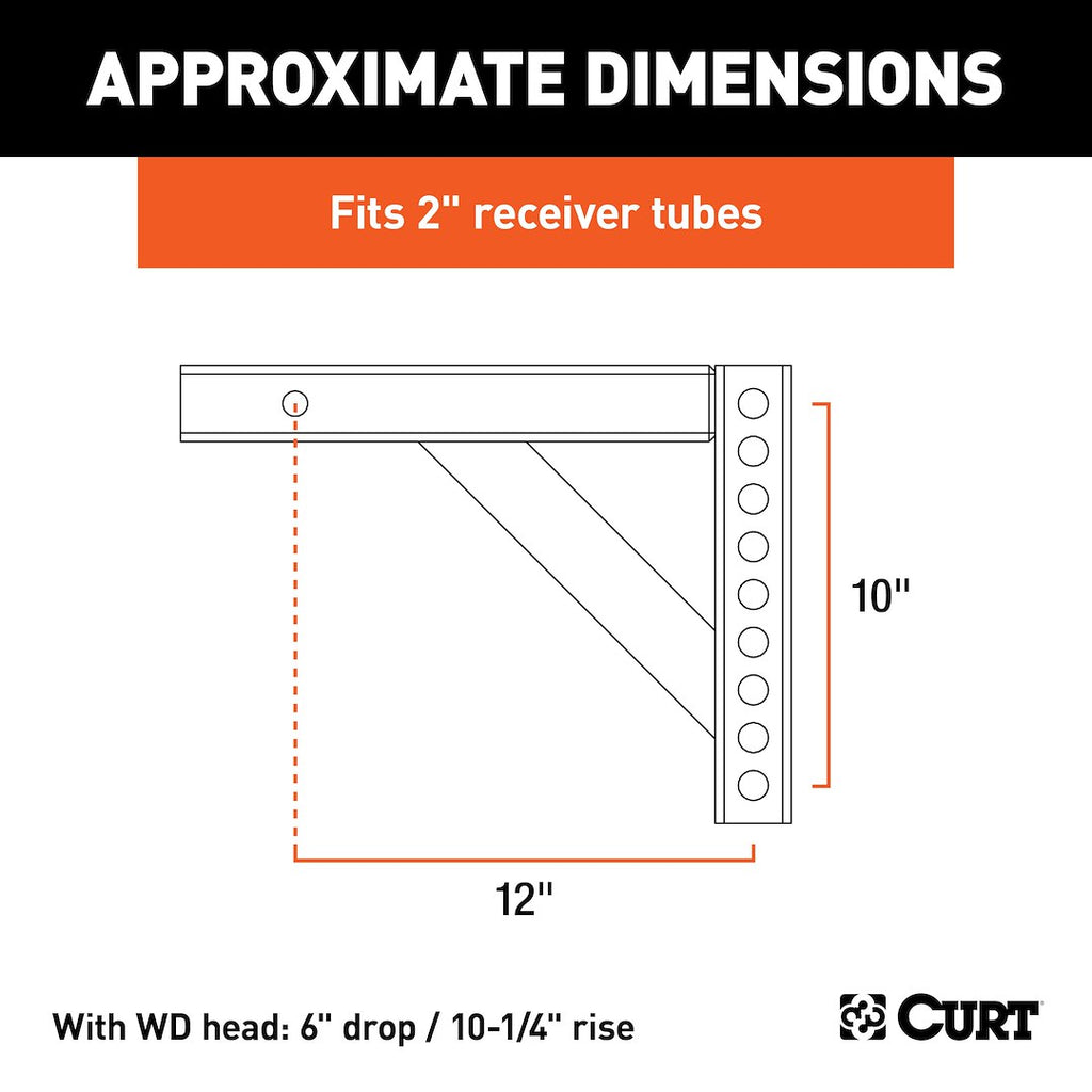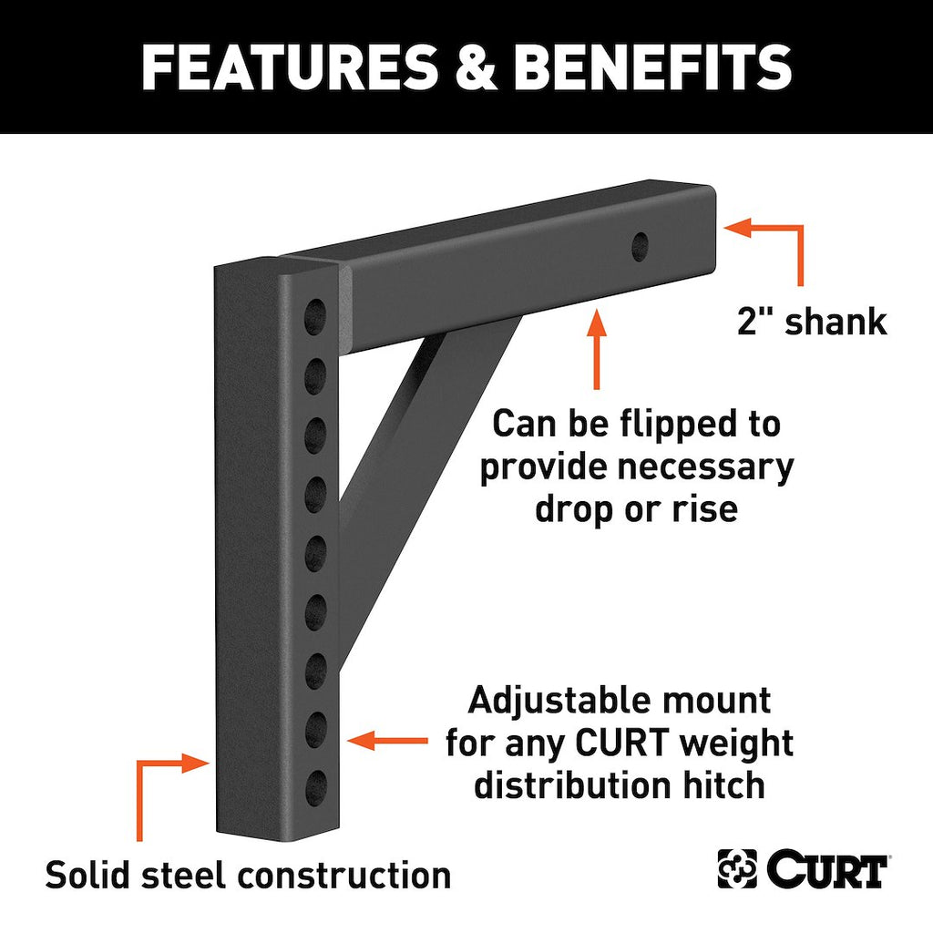 The CURT Weight Distribution Hitch Shank is engineered for robust towing applications, providing a reliable connection for large RVs and travel trailers. Designed to fit a standard 2-inch receiver, this hitch shank features a solid construction that ensures durability and performance on the road.