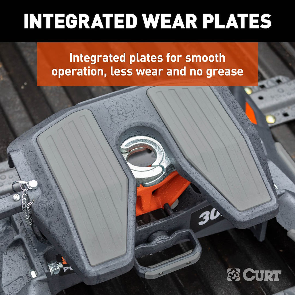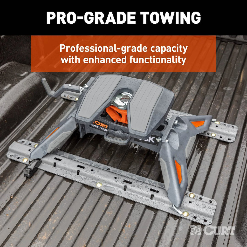 The CURT Fifth Wheel Trailer Hitch is engineered for heavy-duty towing, offering a robust 30,000-pound weight capacity and a 7,500-pound vertical load. Designed for ease of use and superior performance, this hitch features a self-resetting handle and a multi-directional head for a smoother towing experience.