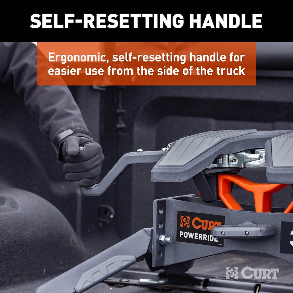 • Ergonomic, self-resetting handle for easy operation from the side of the truck bed