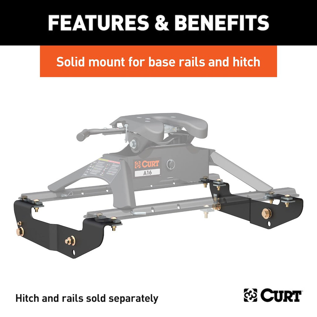 - Designed for use with CURT base rails