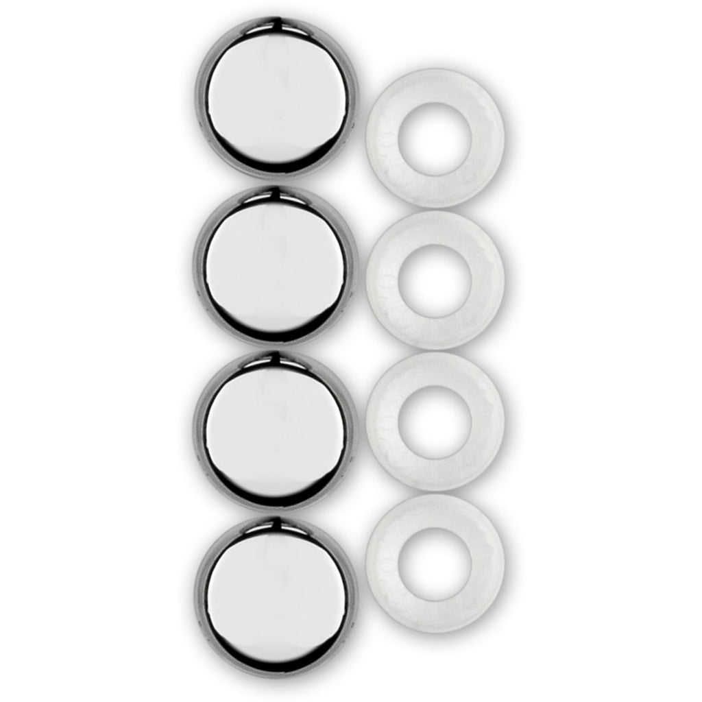 This License Plate Bolt Cover set provides a polished finish to your vehicle's license plate by concealing unsightly fasteners. Crafted from durable chrome-plated plastic, these caps are designed to fit all standard novelty and license plates, ensuring a seamless look.