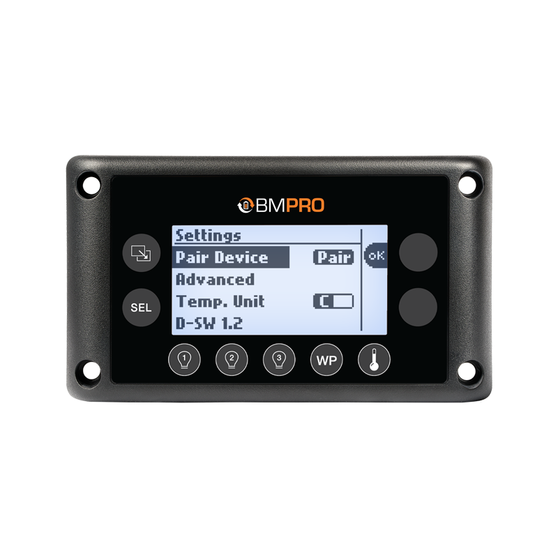 The BMPRO RVMaster is a sophisticated multi-function display designed to enhance the management of your RV's features. This innovative system allows for seamless control of lights, water pumps, and other essential functions through a user-friendly keypad interface or a dedicated app available for both Android and iOS devices.