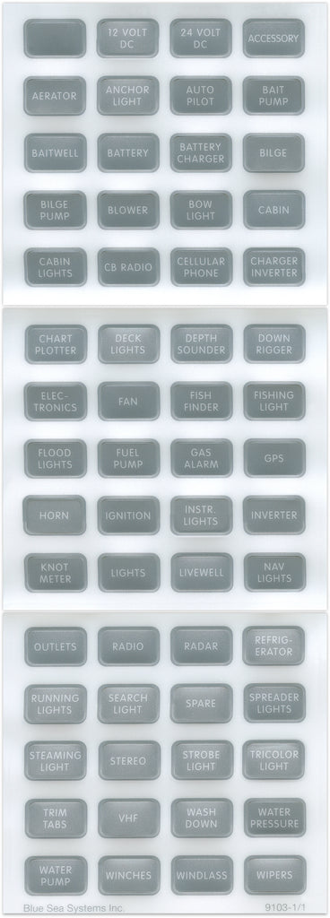 This Multi Purpose Label Set is designed specifically for use with Contura switch water-resistant panels and T blade fuse blocks. Engineered for marine and specialized vehicle electrical systems, these labels provide a reliable and waterproof solution for identifying circuit breakers and fuses.
