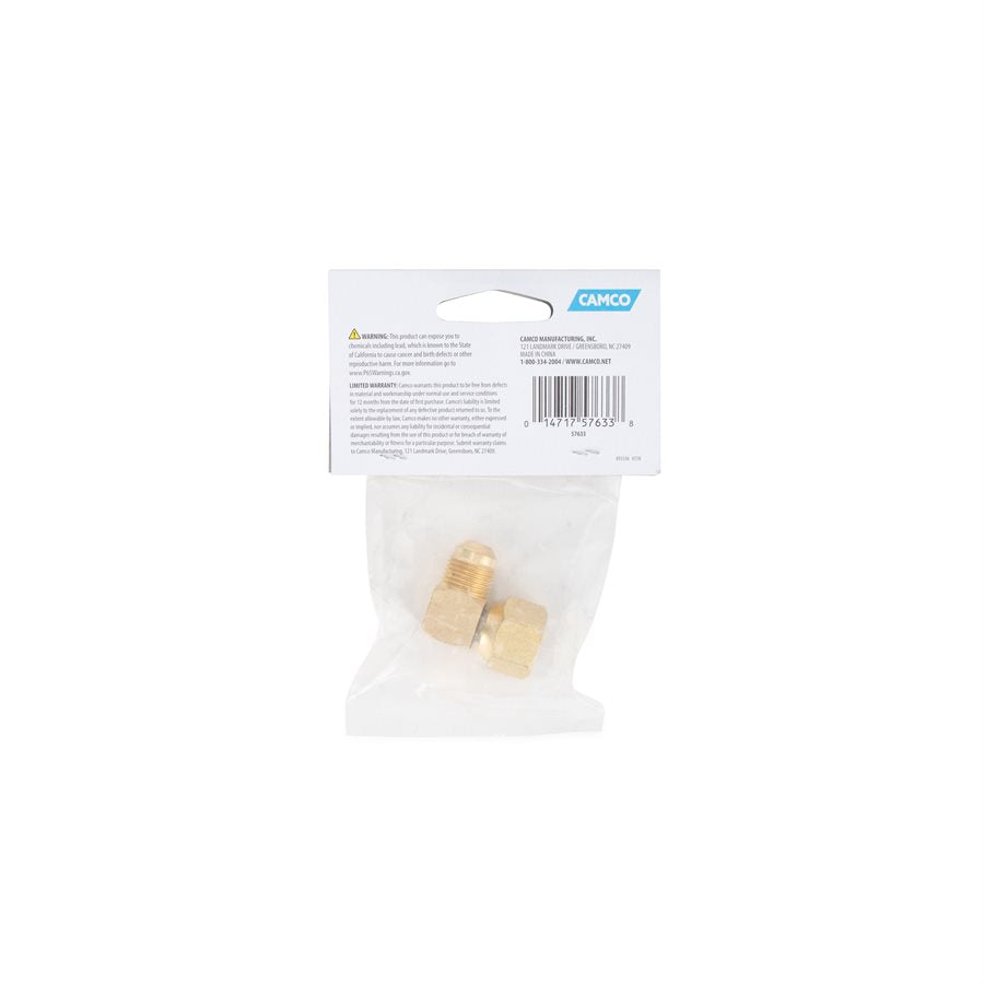 This propane hose connector features a 90-degree elbow design, allowing for efficient and flexible connections in tight spaces. Constructed from durable brass, it is designed specifically for RVs and other outdoor applications, ensuring reliability and ease of use.
