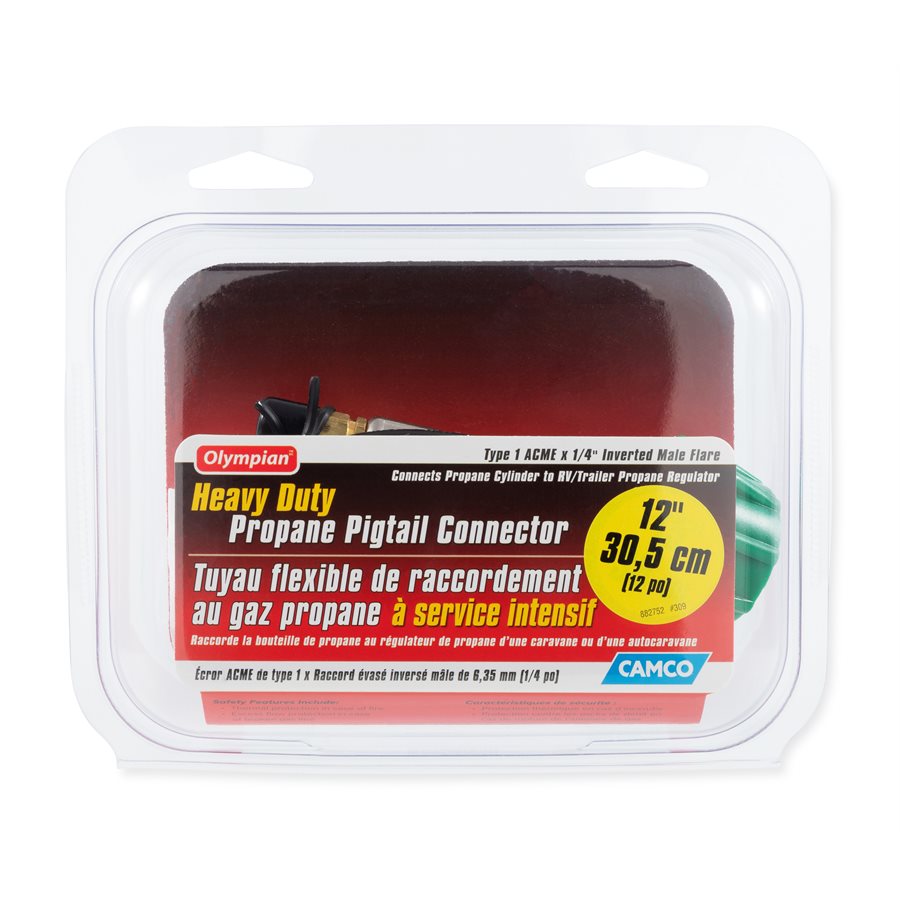 This propane hose is designed for connecting a propane cylinder to an RV or trailer propane regulator. With a length of 12 inches, it provides a secure and efficient way to manage your propane supply.