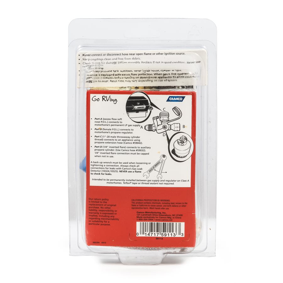 - Mounts in-line between the supply and regulator on a motorhome for easy hookup of an auxiliary propane cylinder