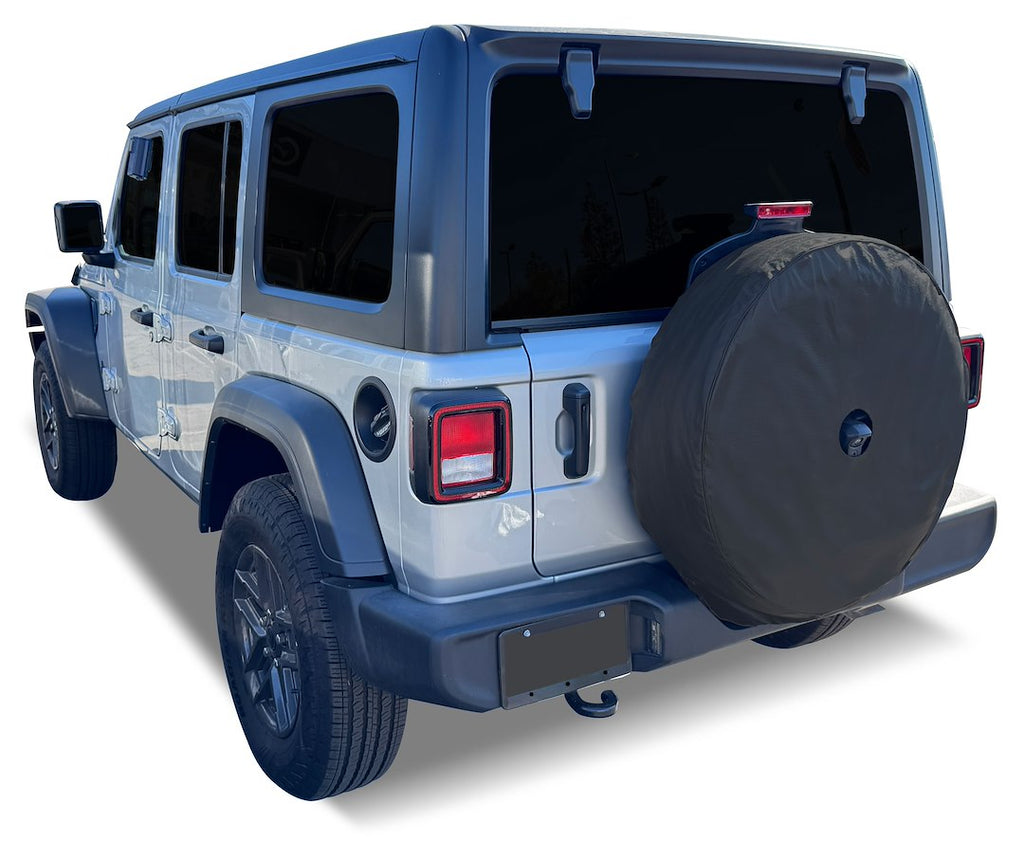 This heavy-duty spare tire cover is designed to safeguard your spare tire while accommodating modern vehicles equipped with backup cameras. The cover features a center opening that allows the camera to function without obstruction, ensuring both protection and usability.