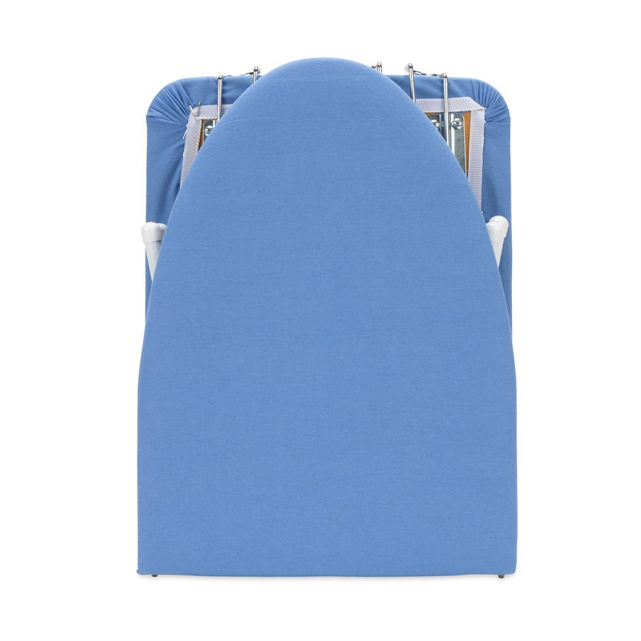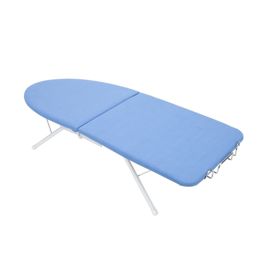 - Tabletop ironing board with a pressed-board top and quality fabric cover