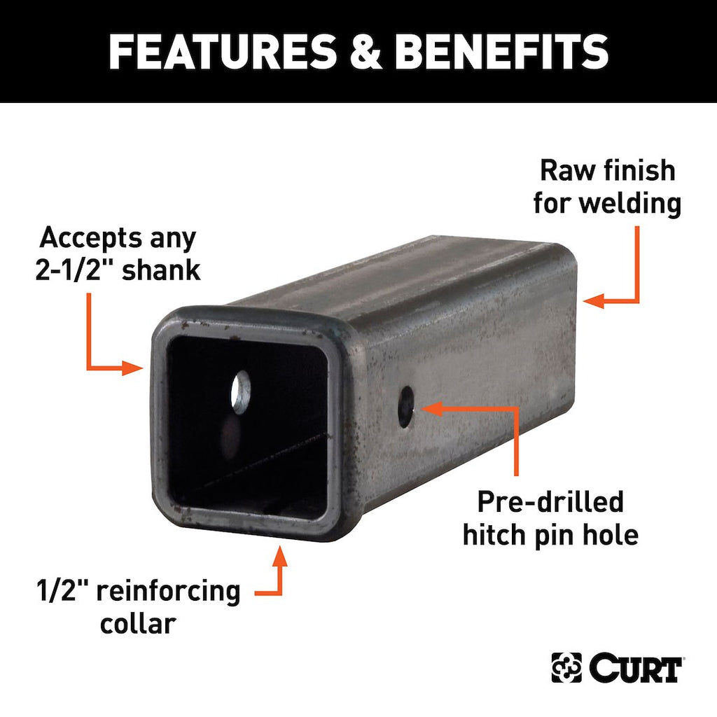 This trailer hitch extension is designed to provide versatility and strength for your towing needs. Constructed from solid steel, it features a raw finish that allows for immediate welding, making it an essential component for custom towing applications. With a 2-1/2 inch by 2-1/2 inch opening and a length of 10 inches, this extension is perfect for extending the reach of your receiver or creating specialized towing equipment.